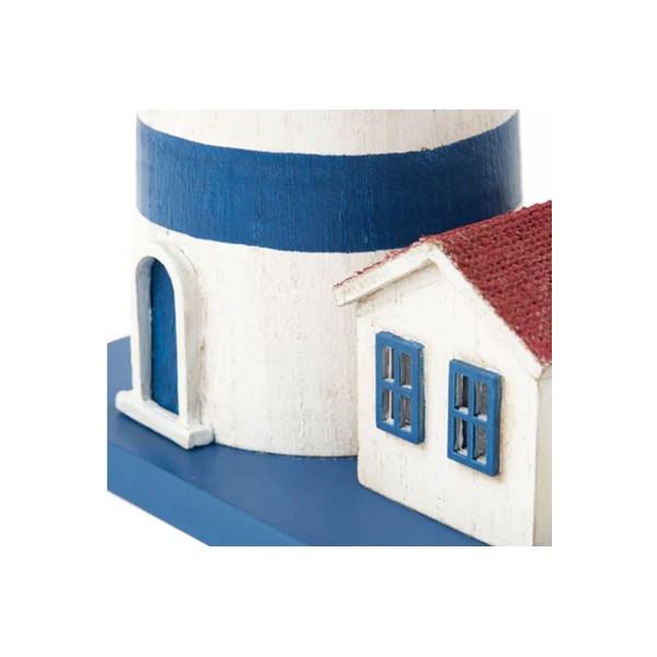 Faro marino fabricado artesanalmente de colores muy vivos que funciona con Led. Lámpara decorativa que imita un faro real. Muy marinero y decorativo.