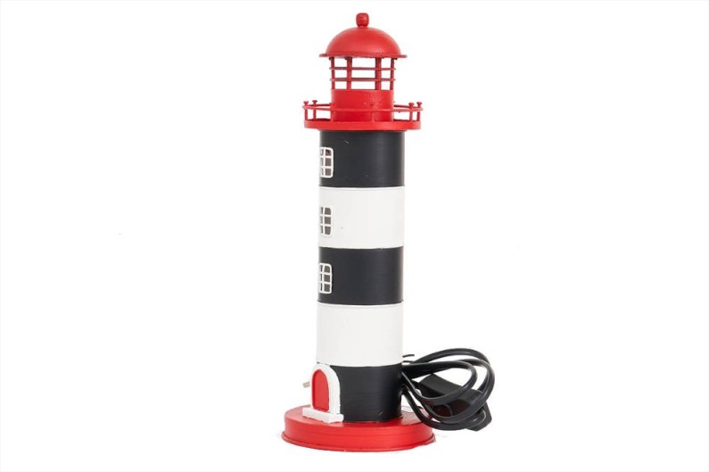 Faro marino fabricado artesanalmente de colores muy vivos que funciona con 220v. para oficina que reproduce un faro real. Muy decorativo y marinero