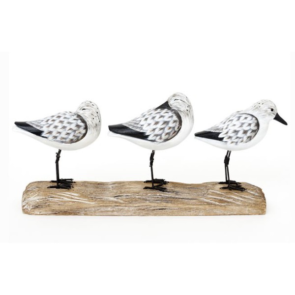 3 bonitos pájaros de madera fabricados artesanalmente, con base de sujección.