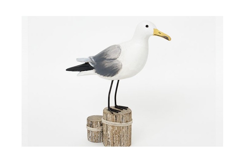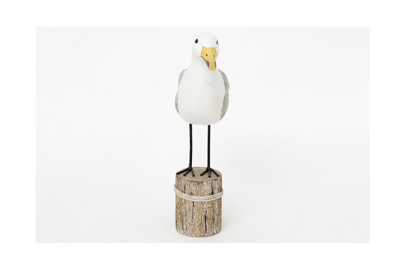 Elegante figura de pajaro para decoración marinera, reproducción ave marina. Fabricado a mano en madera pintada.