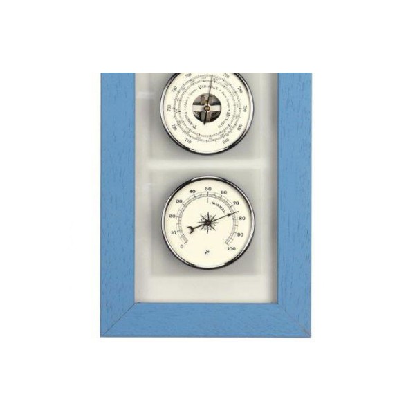 Estación metereológica. Dispone de humedad, presión atmosférica y la temperatura pudiendo realizar una previsión meteorológica básica de todo navegante. Están montados sobre un marco de madera.