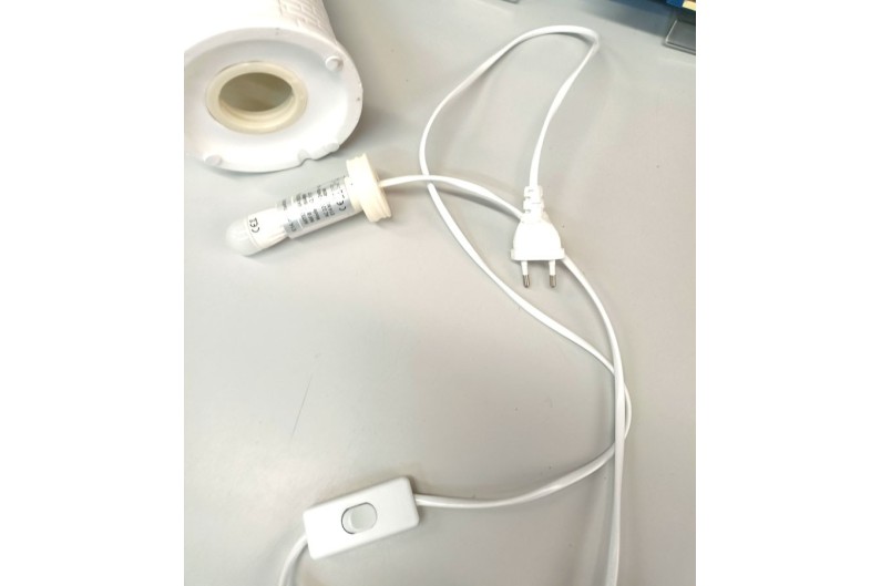 Funciona con 220v y bombilla E14.
