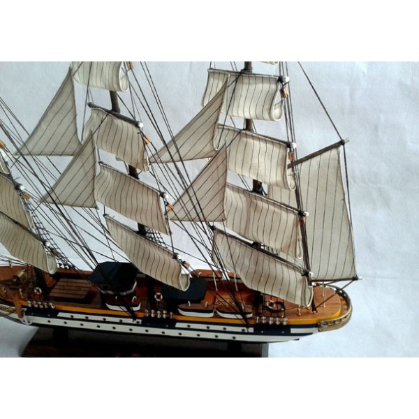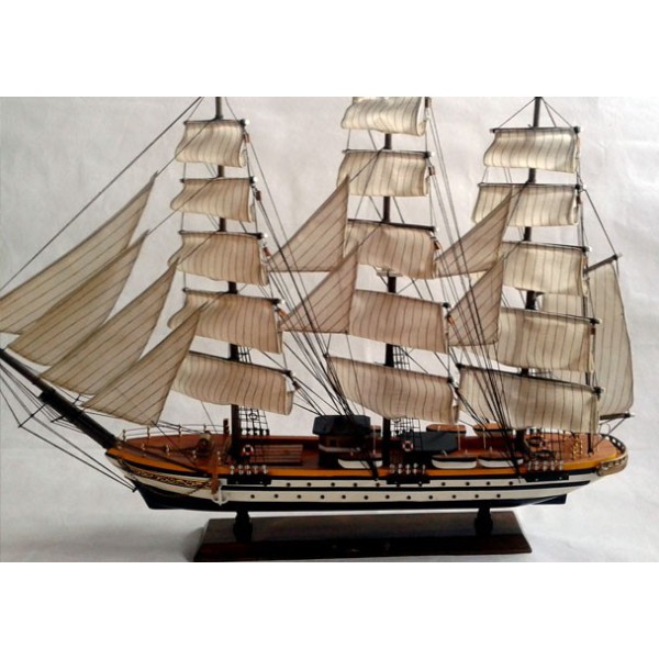 Amerigo Vespucci fue construido en 1930 en el Regio Cantiere Navale de Castellammare di Stabia, cerca de Nápoles, donde se botó el 22 de febrero de 1931, en el 50 aniversario de la fundación de la academia naval. Todavía está a flote como buque escuela. La nave también lleva a cabo el papel de embajador de la cultura y la tradición naval italiana. Bonita maqueta de decoración marinera.