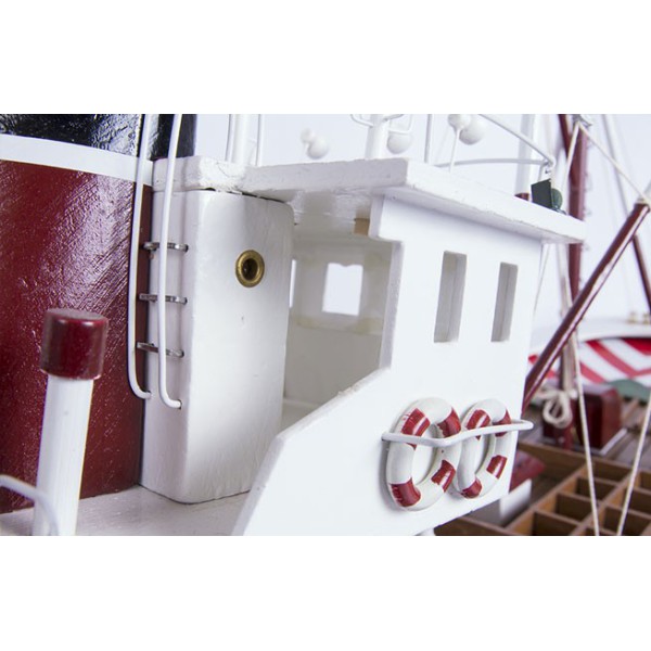 Preciosa maqueta TOTALMENTE MONTADA de un barco ATUNERO, que decora tanto su casa como oficina, y es un regalo inolvidable que perdura a través del tiempo. Construcción de alta calidad con materiales nobles, y con énfasis en los más pequeños detalles.