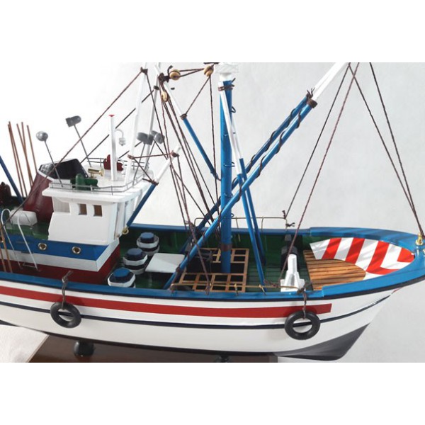 Barco de Pesca del Norte que se dedicaba a la pesca del atún. Su proa elevada que le protege de la mala mar es característico. Maqueta fabricada artesanalmente en madera.