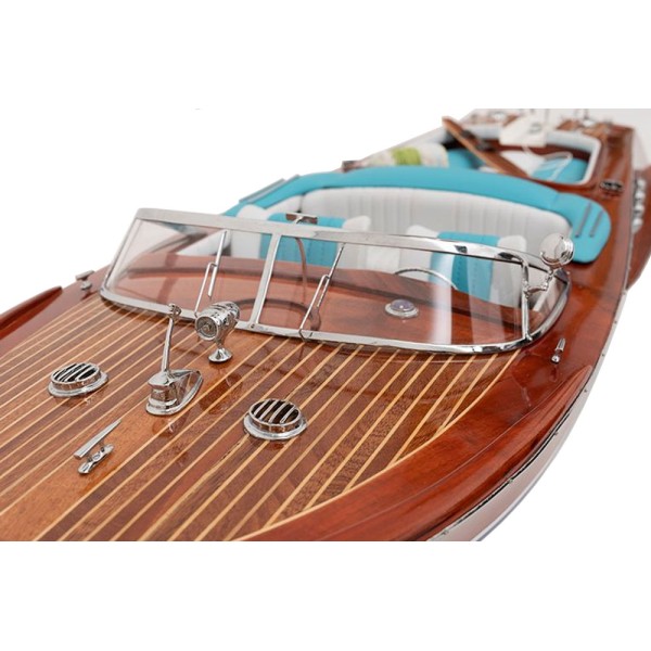 Preciosa maqueta TOTALMENTE MONTADA de una lancha de decoración Rv Aquarama que decora tanto su hogar como su depacho, y es un regalo inolvidable que dura a través del tiempo. Construcción de alta calidad con materiales nobles. Mida bién la estantería o lugar donde tiene pensado poner esta preciosa reproducción, ya que estas maquetas son más grandes de lo que parecen.