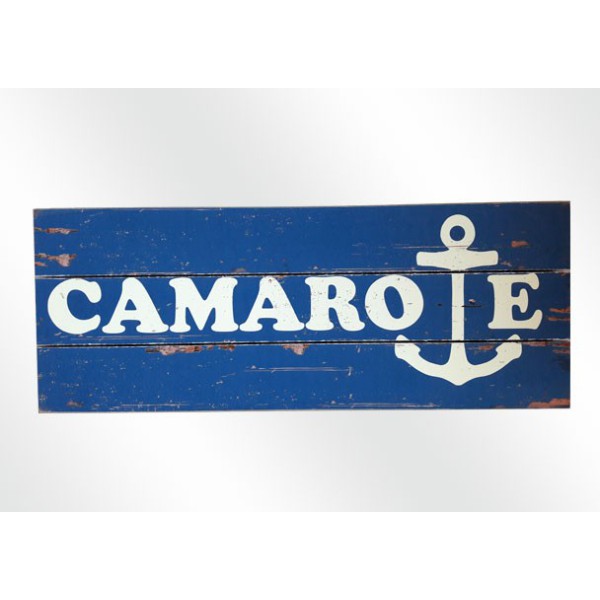 Placa CAMAROTE, de estilo rústico realizada en madera.