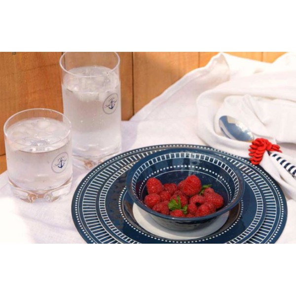 Set de 16 piezas, que incluye: 4 platos planos, 4 platos hondos, 4 platos postre, 4 tazas mug y bolsa de transporte.