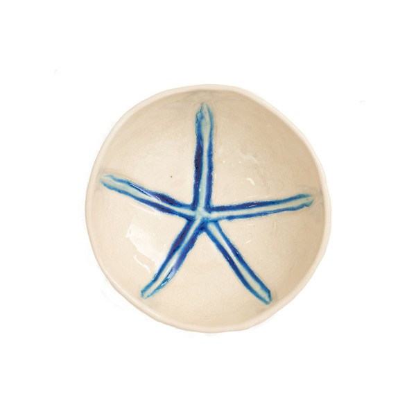 Bol de cerámica con una estrella de mar pintada en su interior.
