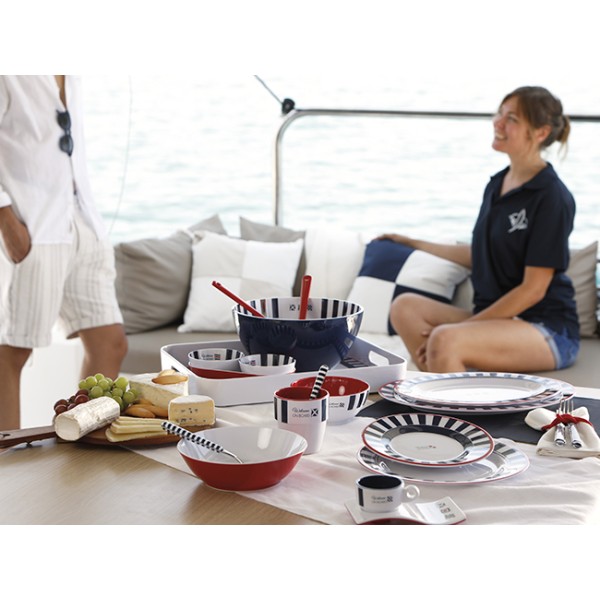 Ensaladera con elementos para servir, de precioso diseño, de color azul.