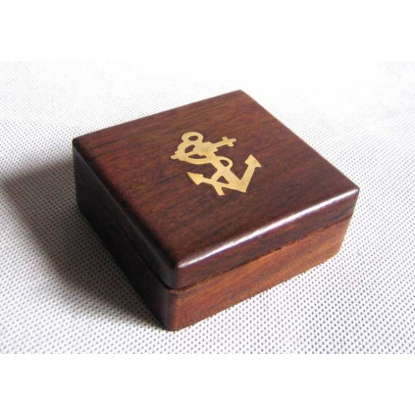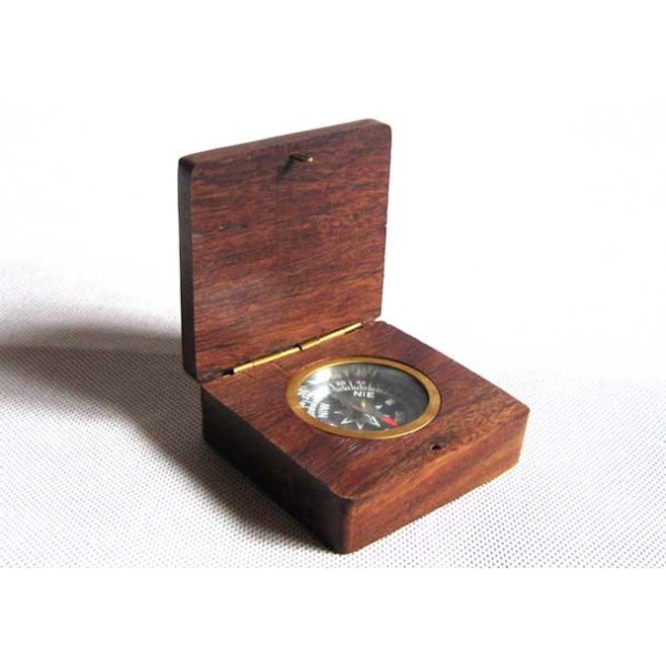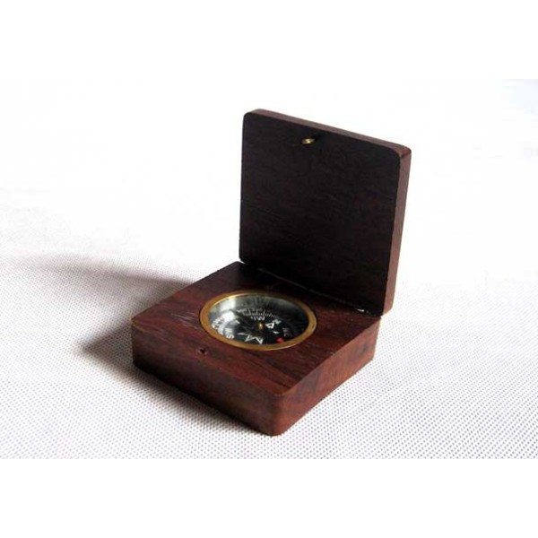 Compas dans une boîte en bois d'accouplement avec la haute qualité des mesures 6,5 x 6,5 x 2,5 cm. Idéal comme un rappel des conventions et des visiteurs, ou les détails des affaires. Compass histoire