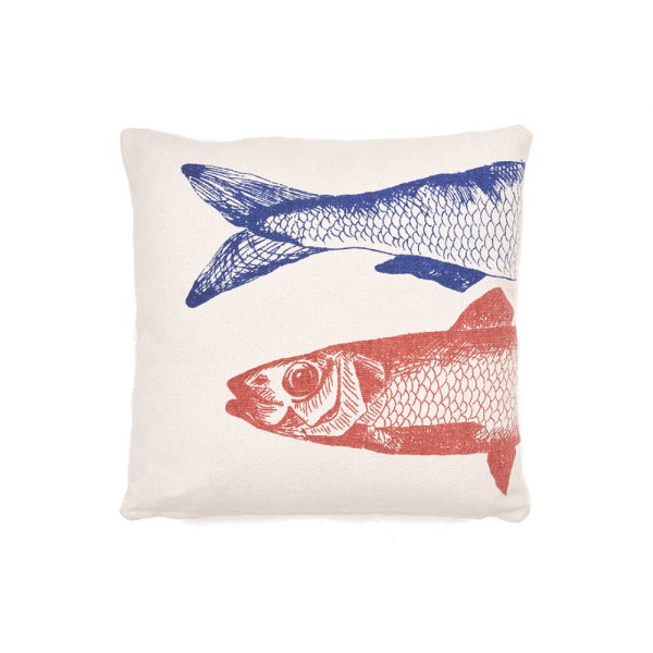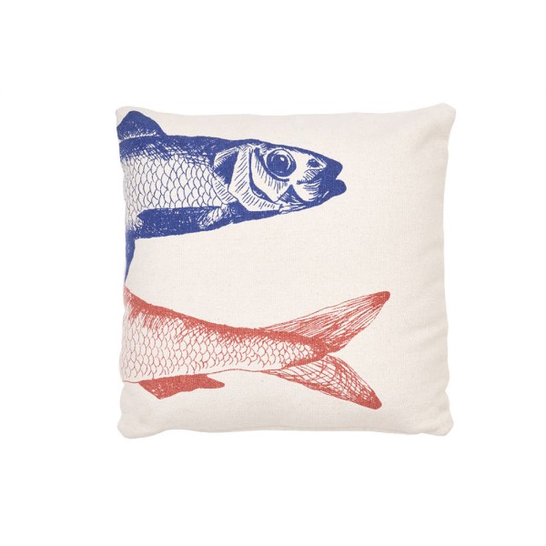 Lot de 2 coussins en coton, avec imprimé poissons, de haute qualité, fond blanc.