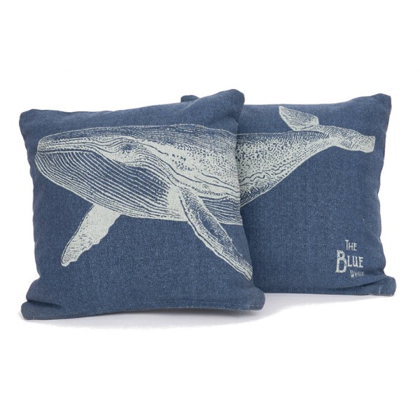 Lot de 2 coussins de haute qualité avec une baleine, imprimée en coton.