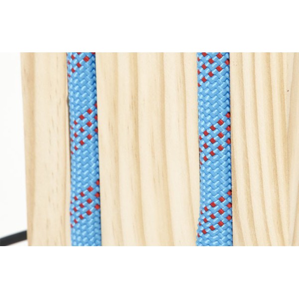 Lampe en bois de table avec abat-jour en tissu translucide. Il fonctionne avec 220v - E27.