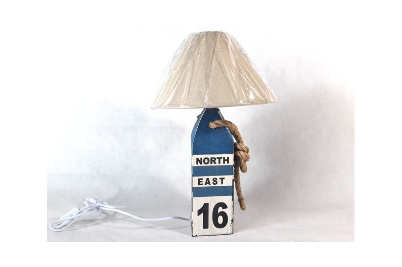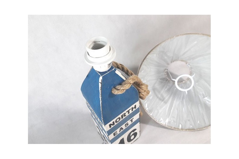 Lampe balise inspirée des bouées balises maritimes flottantes. Lampe en bois décoratif nautique, peint et décoré à la main. Livré avec l'écran.