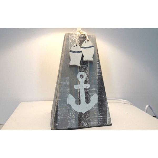 Lampe décorative nautique fait en bois, peint et décoré d'une ancre marine.