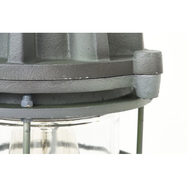 Lampe marine en alliage métallique vieilli peint en gris.