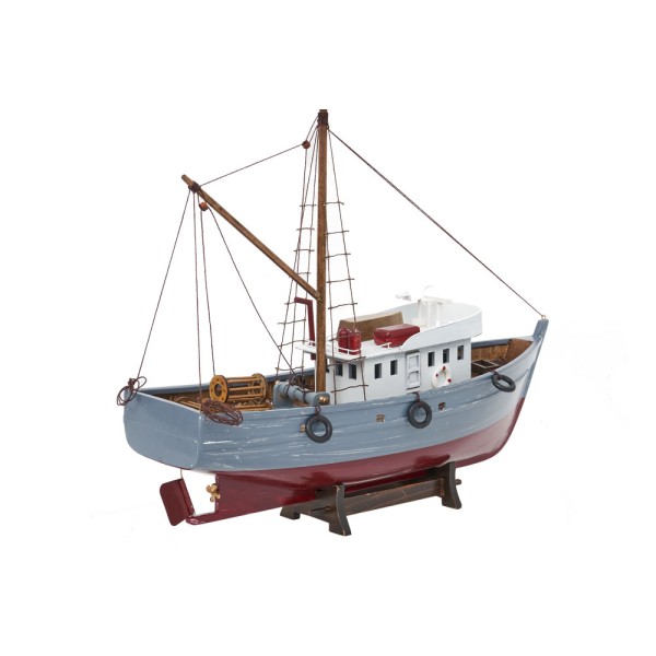 Bateau de pêche typique de la côte nord de l'Espagne pour la pêche dela merlu. Sa principale caractéristique est son arc élevé qui vous protège de la mer forte. Maquette en bois fabriquée à la main.