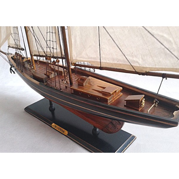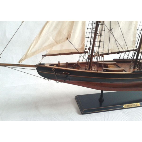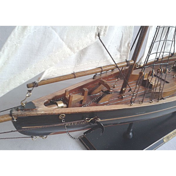 Modéle de Bluenose (1921), conçu pour la pêche à la morue, il était un légendaire goélette de course. Son nom vient du surnom donné à la nouvelle écossais. Le modèle est fait et peint à la main. Le mât est démonté pour le transport.