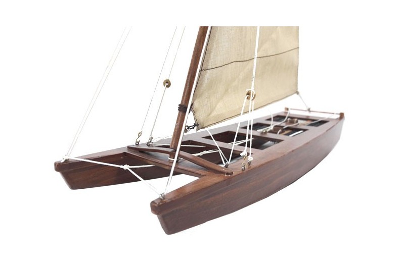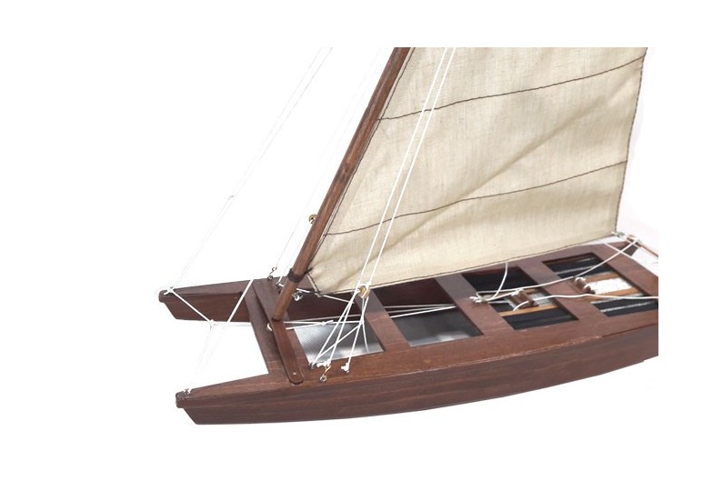 membre d'équipage. Connu pour être un catamaran de type simple, sans Marconi boom et la particularité de ne pas avoir de gouvernail ou de dérive. Le gouvernement du bateau est faite avec le mouvement et le modèle de distribution du poids sur le pont lui-même et avec la feuille, qui envoie la bougie. Il est spécialement conçu pour l'échouage sur la quille ou le gouvernail plage de défaut.