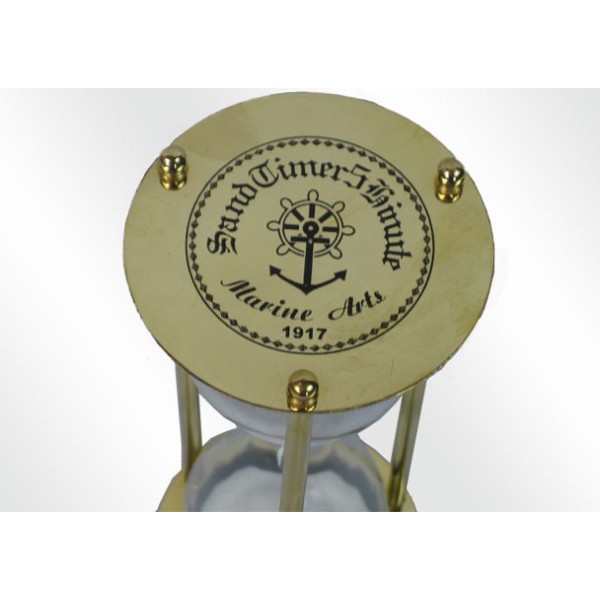 Belle réplique d'un sablier, en laiton poli, sable blanc i durée de 5 minutes. Son utilisation devrait être purement décoratif.