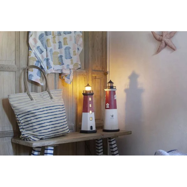 Phare marine fabriqué à la main de couleurs vives qui fonctionne avec Led. Lampe décorative imitant un véritable phare. Très marin et décoratif.