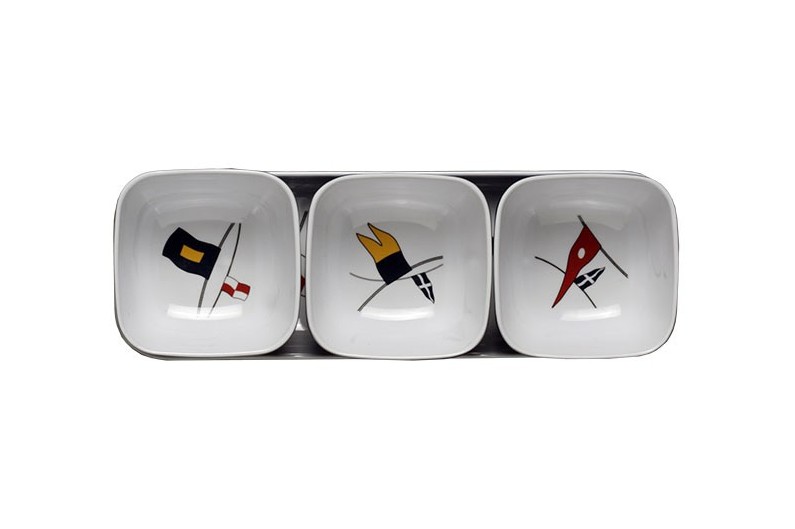 Set 3 unités de bols pour les collations plus plateau de belle conception, de fond blanc et des drapeaux.
