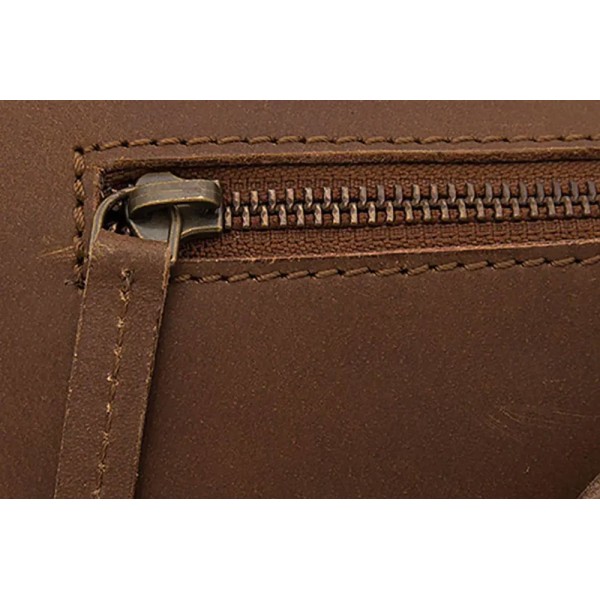 Grand format et fabriqué en cuir. Il a une poche intérieure zippée.