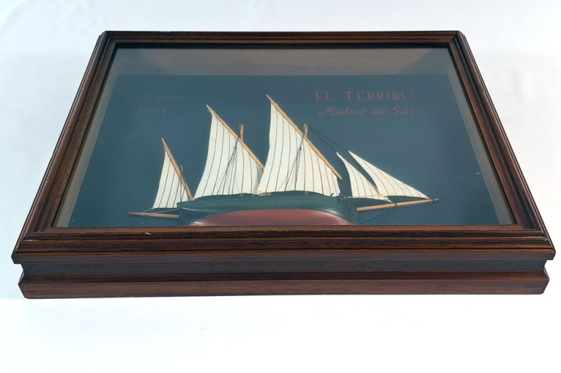 Magnifique tableau ancien de plus de 30 ans de antiquité, fabriqué à Barcelone (Masnou), avec la reproduction du navire mystique appelé "EL TRERRIBLE" de 1844. Tableau arrondi en bois de chêne massif verni. Pour les amateurs d'antiquités.