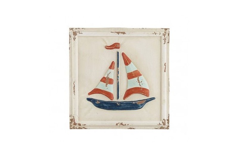 Tableau marine décorative fait de metal. Il se trouve un beau voilier.