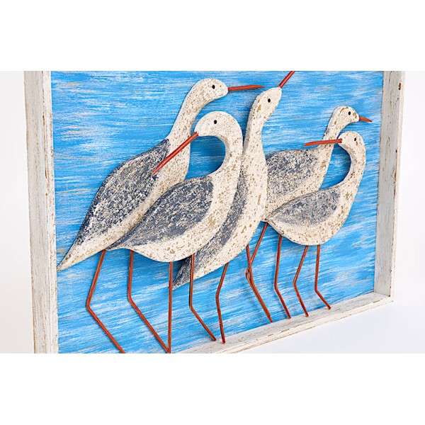 Cadre marin décoratif en bois. Le tableau met en valeur quelques oiseaux dans la mer.