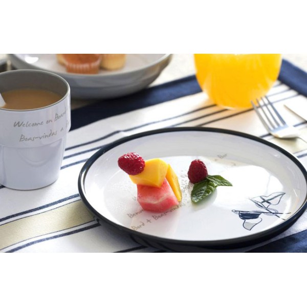 Set de 24 pièces, et compris: 6 assiettes plates, 6 assiettes creuse, 6 assiettes à dessert, 6 Mugs et des panier.