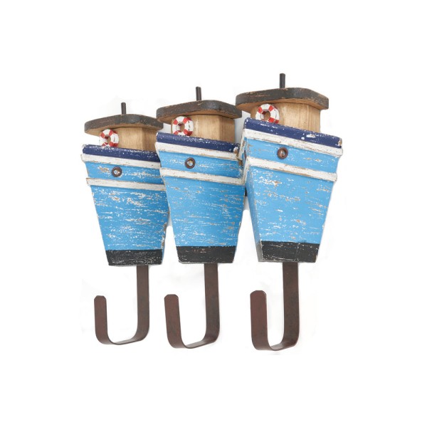 Gancio per barca in legno e appendini in ghisa.