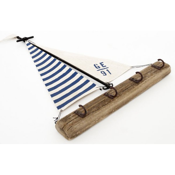 Appendiabiti chiavi da vela, realizzati a mano con vele in legno, acciaio e cotone.