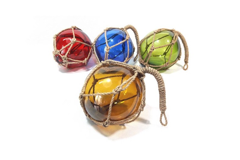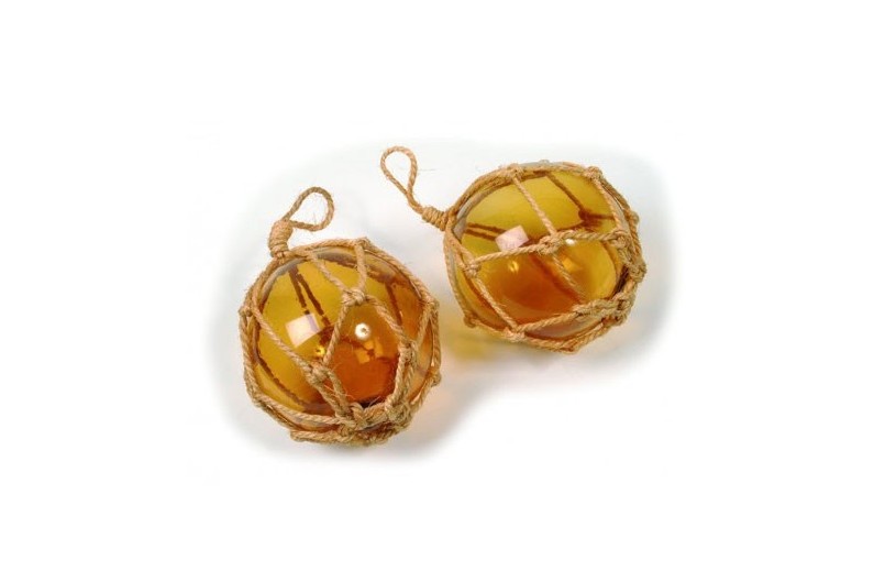 La boa da pesca era un antico galleggiante costituito da una palla di vetro circondata da una corda intrecciata. Fu utilizzato fino al 1950. Questi galleggianti erano attaccati alle reti da pesca in modo che rimanessero in superficie mentre andavano alla deriva nella corrente. Oggetto che darà un tocco marino decorativo. Il prezzo è per unità.