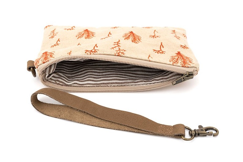 Bella borsa a mano in cotone, con cinturini in pelle e stampata con Corallo. Colore bianco e arancione.