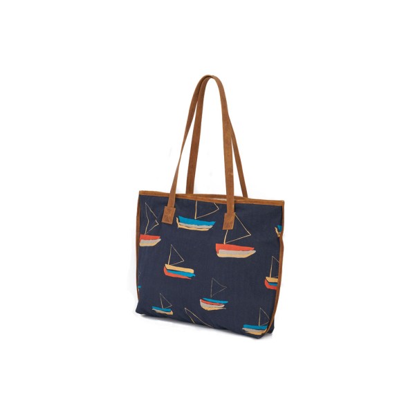 Bellissima Borsa con "barche a vela" realizzata in cotone, con manici in pelle.