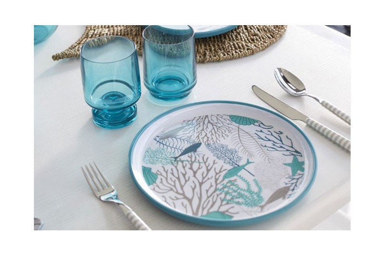 Set di 24 pezzi, comprendente: 6 piatti piani, 6 piatti fondi, 6 piatti da dessert, 6 tazze e borsa per il trasporto.
