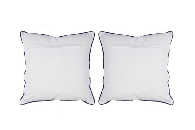 Coppia di cuscini che formano un disegno di un pesce tra i due.