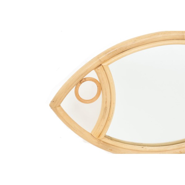 Specchio a forma di pesce con cornice in legno. Fatto a mano.