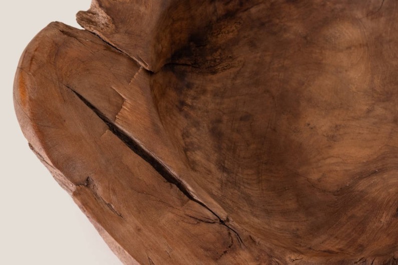 Centrotavola rustico in legno di teak per decorazioni interne ed esterne. Fatto a mano in Indonesia. Pezzo unico.