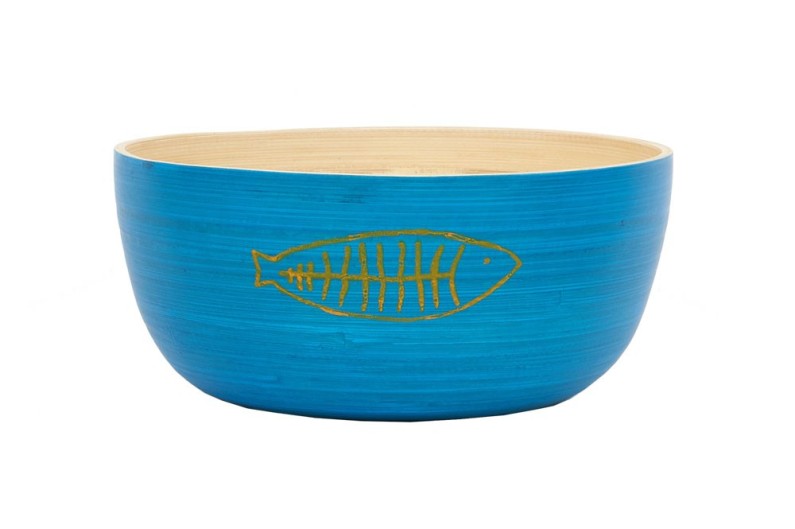 3 ciotole in legno di bambù, in diversi colori blu. Accessori da tavolo in bambù durevoli ed ecologici. Un prodotto colorato per ogni occasione al chiuso o all'aperto.