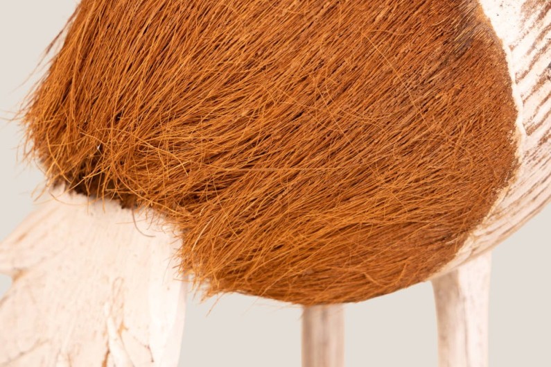 Pellicano in legno di albasia con corpo in cocco. Realizzato a mano in Indonesia, pezzo unico.