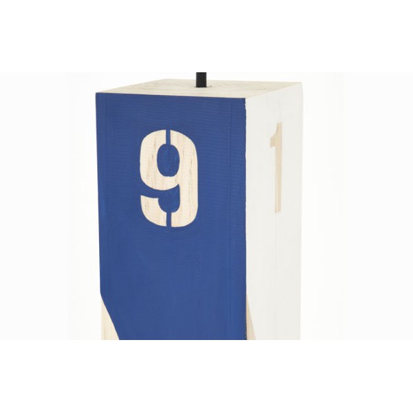 Lampada da terra in legno, con paralume in tessuto traslucido. Funziona come 220v. E27.