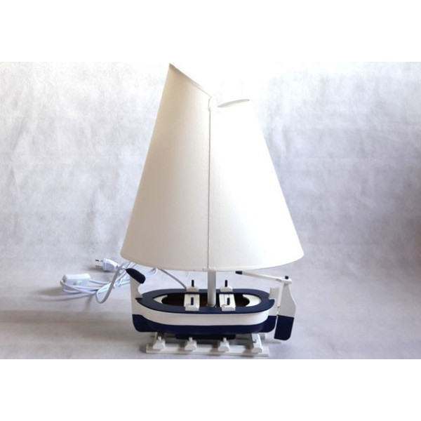 Luce della barca. Lampada nautica originale ricavata da uno scafo di barca da cui si alza la vela.Prodotta e dipinta a mano. Viene fornito con lo schermo.