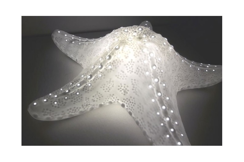 Lampada stella marina in porcellana traslucida. Bella luce marina che diffonde una luce calda, ideale per ambienti intimi e rilassanti.