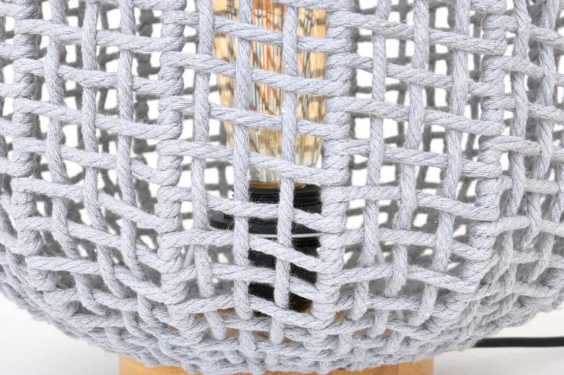 Lampada da tavolo dal design a rete, realizzata in cotone e legno di alta qualità.