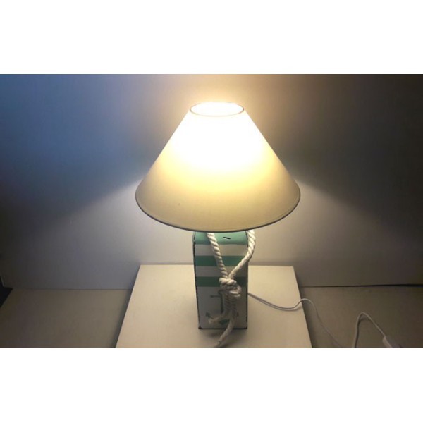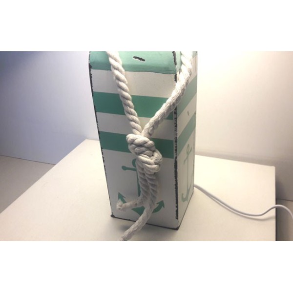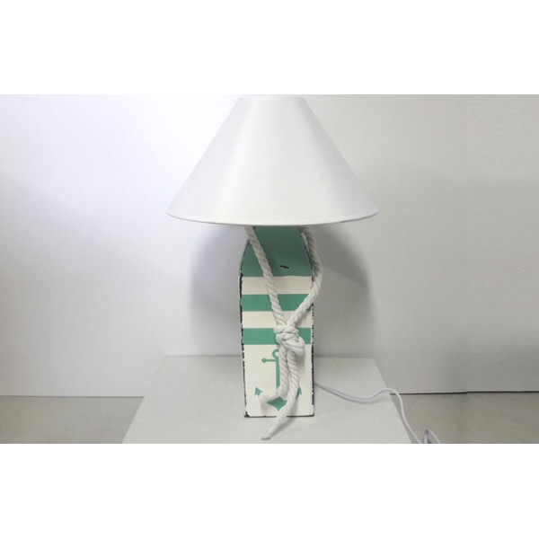 Lampada con base decorativa in legno di pino. Realizzata e dipinta a mano.