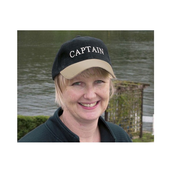 Cappello da marinaio nero, con logo CAPTAIN ricamato. Disegnato con aperture di ventilazione che garantiscono la ventilazione della testa. Regolabile sul retro.