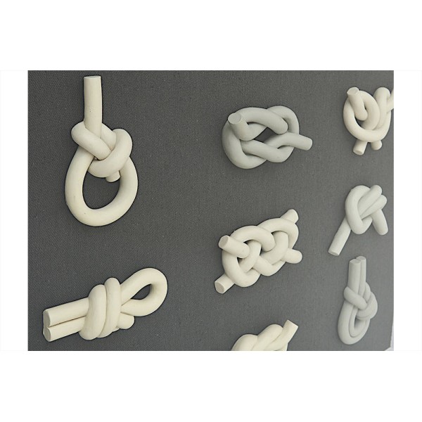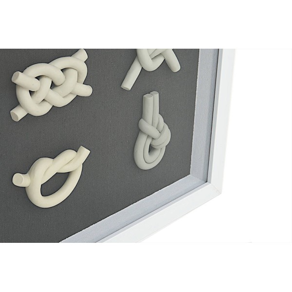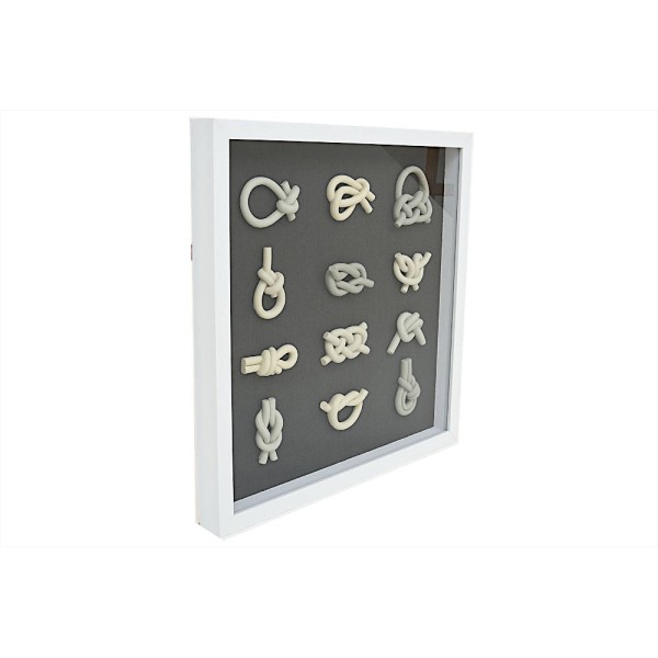 Bellissimo dipinto raffigurante un nodo nautico. Con sfondo nero e cornice in legno dipinta di bianco. Ciascuno dei nodi è realizzato sinteticamente.